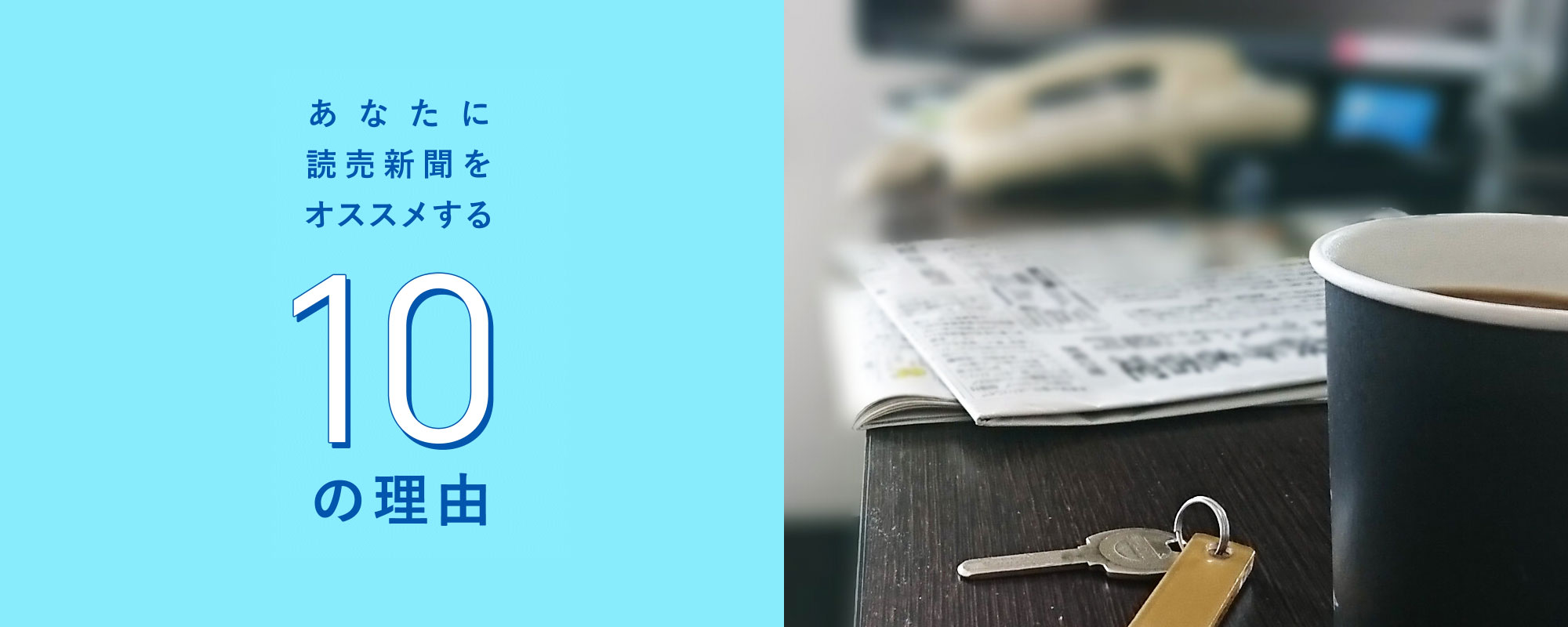 読売新聞の記事は、無料ニュースとは違うんです。記者が丁寧に取材して、いくつもの確認を経て掲載 された本物の記事ばかりです。フェイクニュースや表面的なうわさに振り回されたり、SNSに一喜一憂 したりするのはもうやめたいと、心のどこかで思っているあなたにこそ、読んでほしい。 10個の理由で は語りつくせない読売新聞の良さを試して欲しいんです。正しい情報を選ぶことで、自分で決断でき、内面の美しい人になれると思っています。一緒にはじめませんか、読売新聞。この機会に、あなたも、読売新聞で自分みがきを始めませんか。